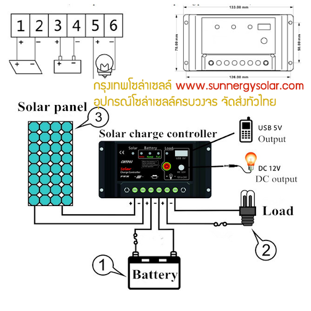 การต่อใช้งานโซล่าชาร์จเจอร์ที่มีฟังก์ชั่น USB เพื่อชาร์จโทรศัพท์ ต่อโหลดดีซี หรือหลอดไฟ